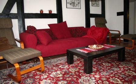 Das Wohnzimmer ist mit einem sehr geräumigen Sofa ausgestattet, so dass zur Not auch eine dritte Person hier komfortabel schlafen kann.