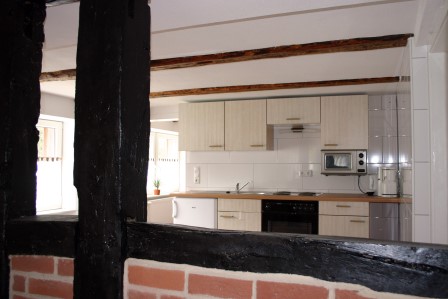 Unsere größte Wohnung, ausgestattet mit 2 geräumigen Schlafzimmern und 1 Kinderzimmer sowie einer großzügigen Küche und Wohnzimmer mit Kamin...bietet sie ein gemütliches Ambiente für bis zu 5 Personen.